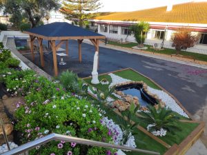 La Residencia se encuentra en pleno centro del municipio de Ayamonte a pocos minutos de cualquier punto de la localidad. En un alto que le proporciona unas inigualables vistas al rio Guadiana y en una parcela que con sus 12.000m2 de superficie. Dispone de jardines para el esparcimiento de los usuarios y una amplia zona de aparcamientos.
